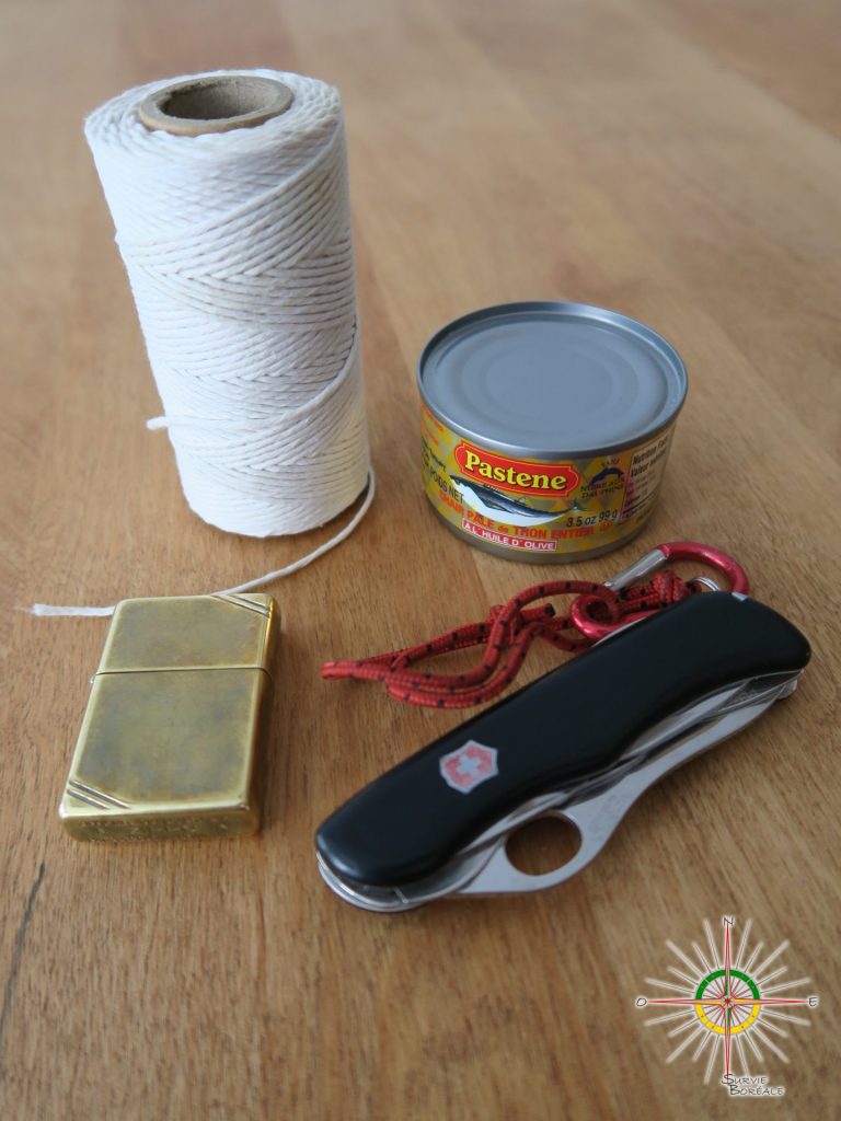 -Une boite de conserve de thon dans l’huile d’olive (important…c’est le combustible)
