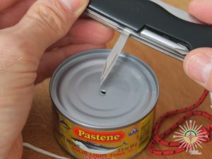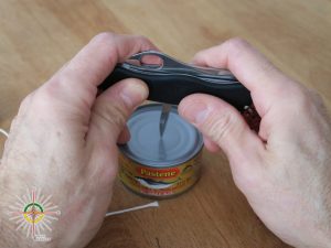 -Un outil pour perforer le couvercle de la boite de conserve et/ou couper la ficelle. (Ici on a un Victorinox)