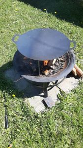 Mais la polyvalence du produit ne s’arrête pas là, Il peut devenir un brasero, une plaque à disposer votre feu. Imaginez que vous êtes dans un parc national ou l’empreinte humaine est à proscrire. Ça serait peut-être l’élément pouvant servir à profiter d’un feu sans pour autant laisser de trace directement au sol. Déposez votre bois directement dessus, allumez-le et profitez ensuite de sa chaleur. Disposez ensuite adéquatement des cendres. Vraiment génial! Il y a même moyen d’en disposer plusieurs l’une au-dessus de l’autre !!!