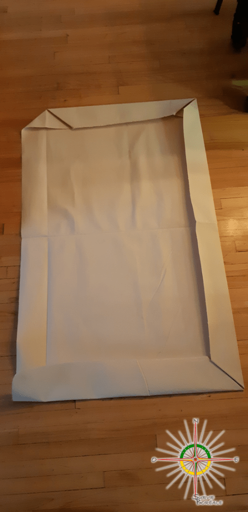 De ce mètre de tissu, j’ai replié les quatre coins pour ensuite replier les quatre côtés dans le but de créer des ourlets de 15 cm approximativement.