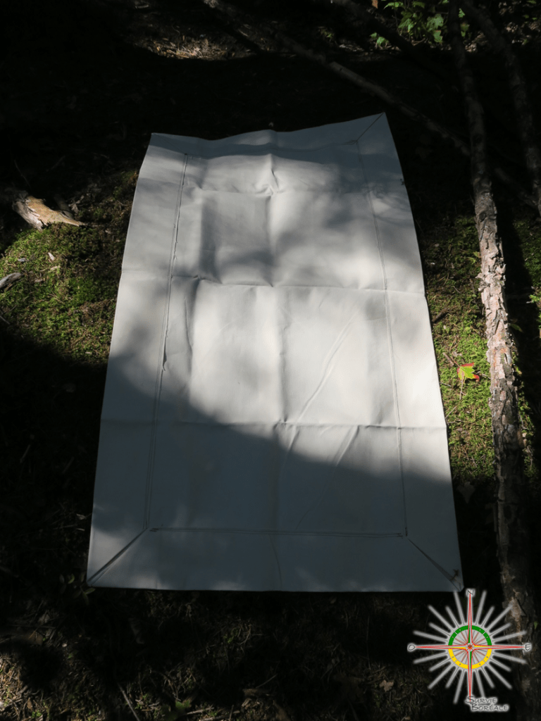Le brancard : Vous avez avec vous une personne qui n’est plus en mesure de se déplacer seule? Eh bien, en glissant deux arbres de bon diamètre et de longueur appropriés dans les ourlets latéraux, il serait possible d’étendre cette personne pour la brancarder et la ramener à la civilisation…