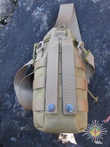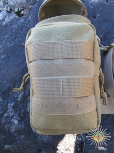 Le sac en question est bien construit et solide. Un trou de drainage a été prévu en son fond. Un système de courroie MOLLE entoure celle-ci et la pochette centrale est assez spacieuse pour engouffrer la plupart des petits articles énumérés ci-dessus.