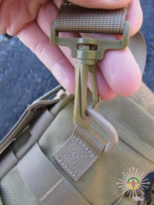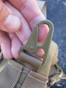 Il se porte soit en bandoulière, soit à la ceinture avec ses deux attaches à bouton pression au dos de celle-ci, soit suspendu par son crochet supérieur ou encore fixé à un sac à dos avec système MOLLE.